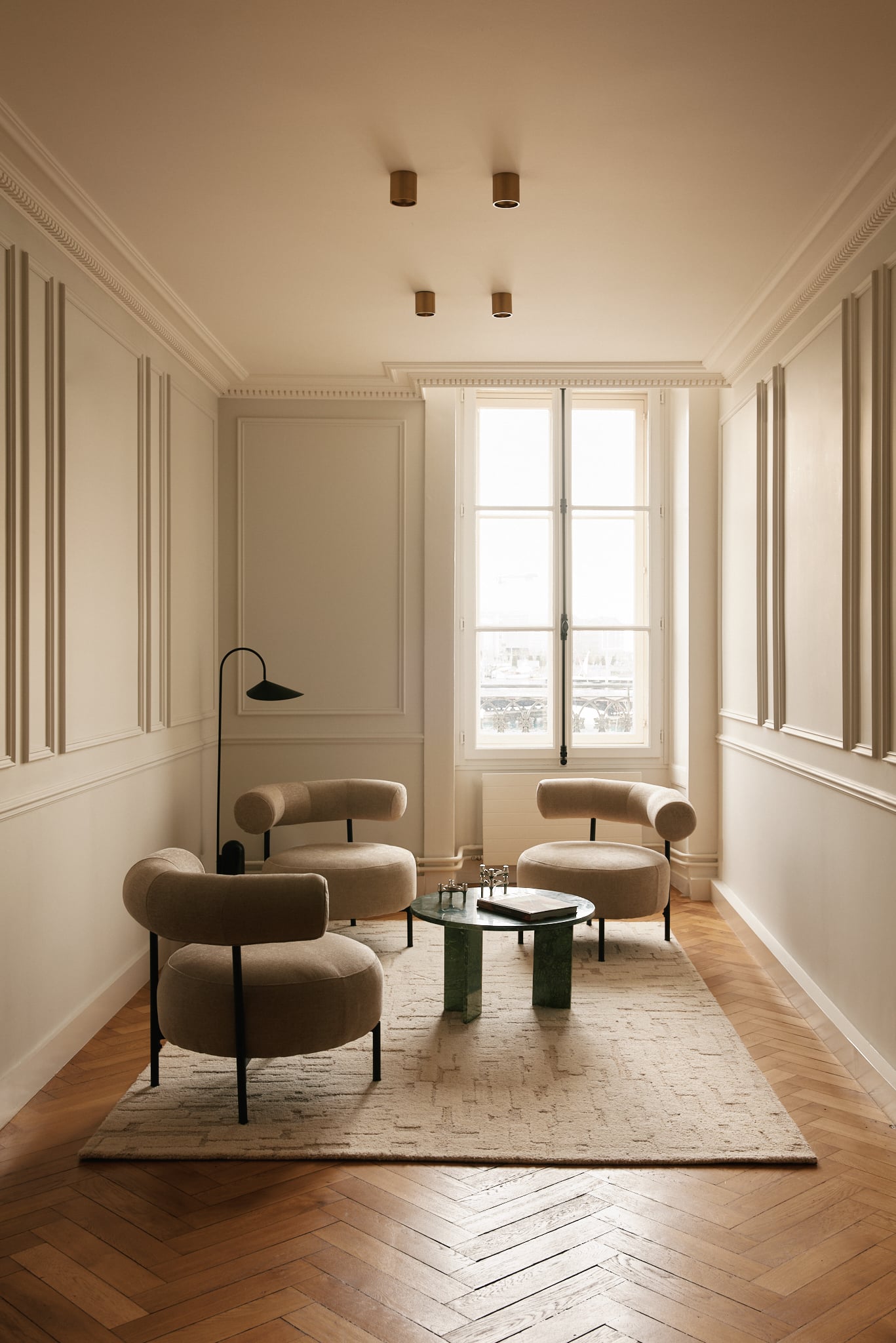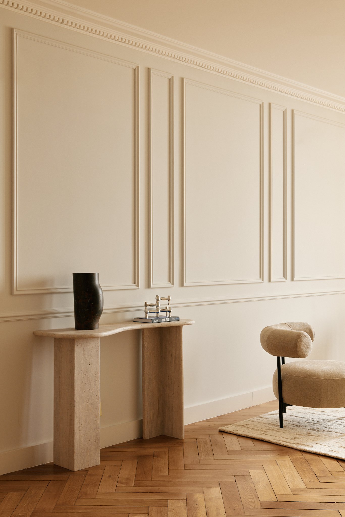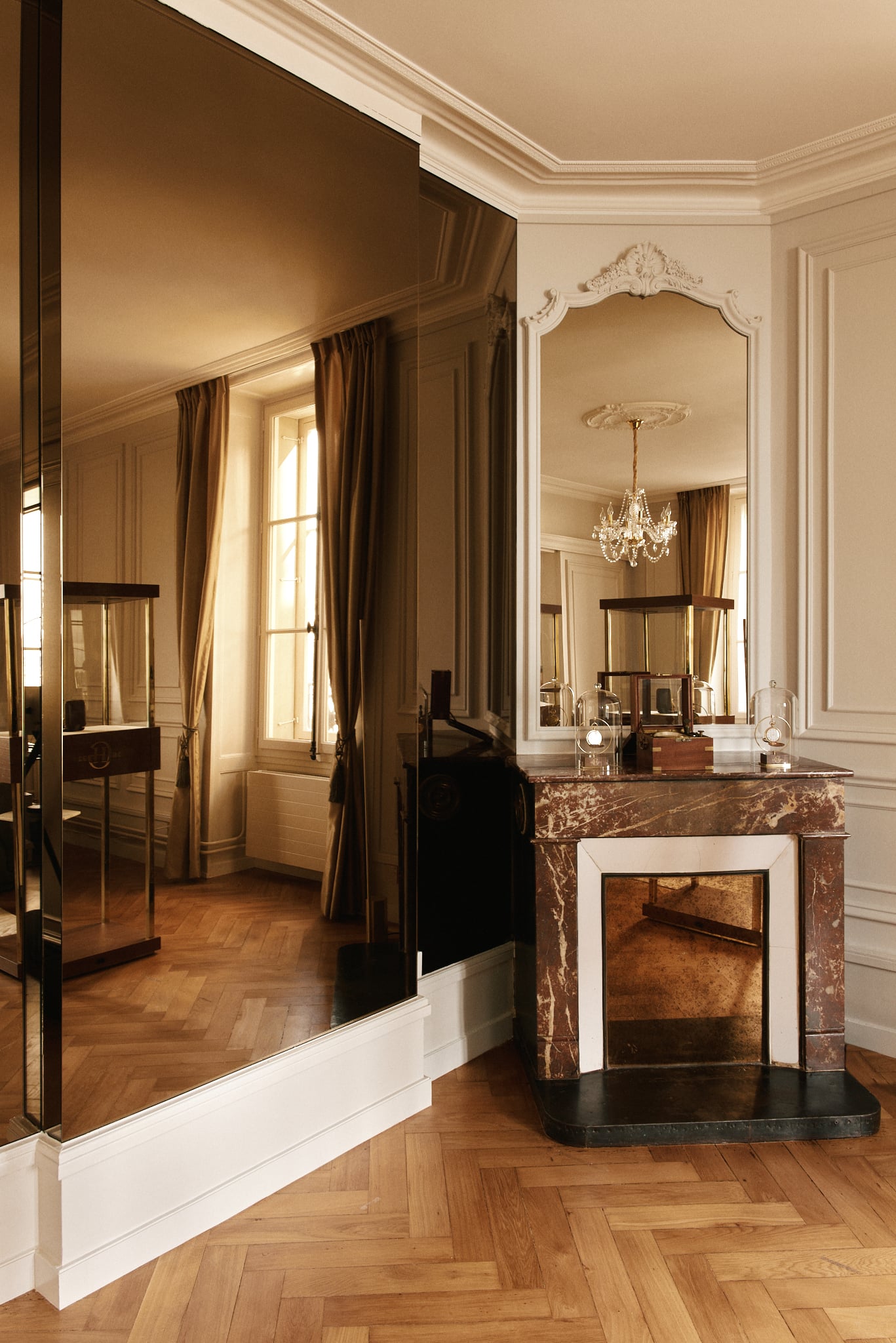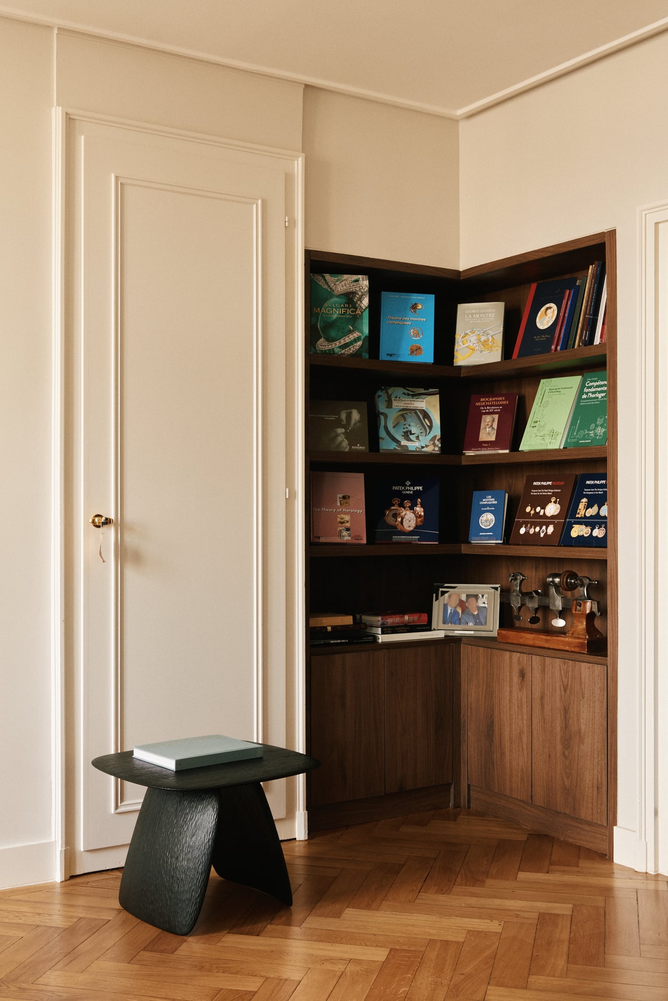 Pour le lancement de cette maison d’Horlogerie, nous avons imaginé un lieu hybride pour présenter des pièces d’horlogerie d’exception sans reproduire les codes traditionnels du retail  : ni boutique classique, ni showroom, mais un appartement privé à l’esprit galerie d’art, où chaque montre est exposée comme une œuvre de collection. Situé au cœur de la Rue du Rhône à Genève, dans un immeuble classé, le projet transforme un ancien bureau d’avocats en un écrin contemporain, chaleureux et intemporel. L’objectif : créer une expérience intime, culturelle et exclusive.